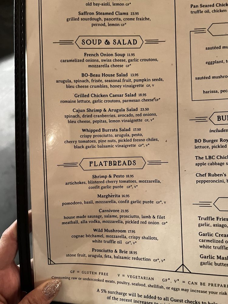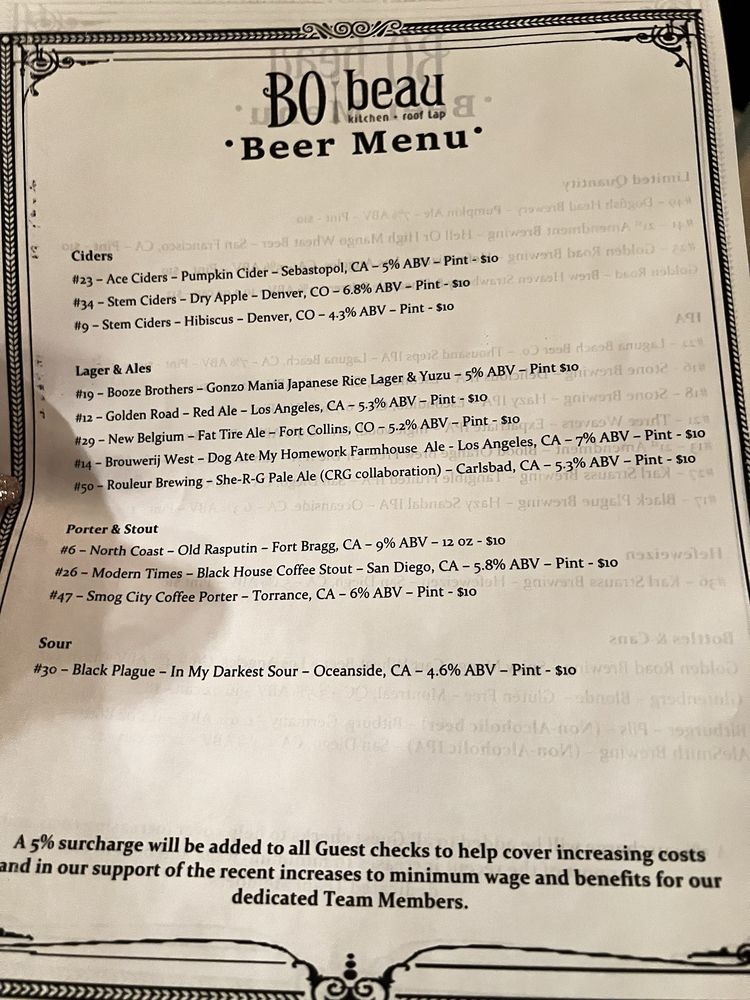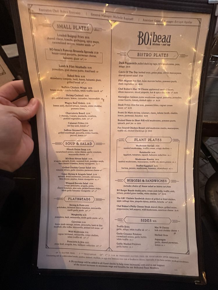 BO-beau kitchen roof tap in Long Beach, CA offers a diverse menu with vegan and vegetarian options. The restaurant provides a trendy yet casual atmosphere perfect for groups and kids. The rooftop bar boasts an extensive drink menu, including housemade cocktails like the Red Sangria and French Riviera Whip. Customers praise the attentive service and delicious food, with favorites like the flatbread and bread pudding. The Bohemian chic ambiance and industrial gastropub design create a unique dining experience. With options for outdoor seating and private dining, BO-beau is a versatile restaurant for any occasion. Don't miss out on the delectable dishes and vibrant atmosphere at BO-beau kitchen roof tap.
